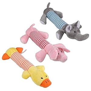 Pecute Pet Puppy Dog Chew Toys Squeaker Squeaky Plush Sound Pig Elephant Duck New Dog Toys 3 Pack