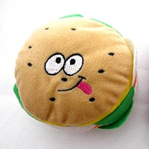 Nalmatoionme Creative Dog Hamburg Shape Plush Toy Pet Puppy Chew Squeaky Sound Play Squeaker Toy