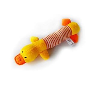 Yeah67886 Lovely Striped Pet Dog Chew Toys Squeaky Plush Duck Toys