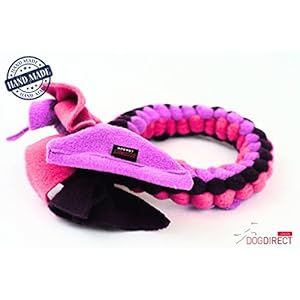 DOG TUG TOY Tugger Tug & Chase Rope SMALL: 45cm/17in, LARGE: 75cm/29in HAND MADE Soft plaited Flexible FLEECE DOG TOY IN VARIOUS COLOURS & SIZES Ideal FOR TRAINING or for PUPPY PLAY, High QUALITY Hand Made Genuine DogDirect London