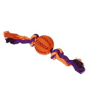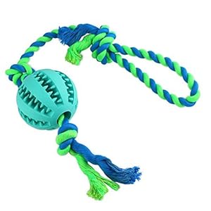 Magic Zone IQ Treat Ball with Rope Toy for Dogs & Cats, Indestructible Dental Treat Bite Resistant Durable Soft Rubber for Pet IQ Training/Playing/Chewing