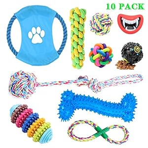 Futuresky Pubby Dog Toys 10 Pack Gift Set Ball Rope and Chew Squeaky Toys Variety Pet Puppies Toys set for Small and Medium Doggie