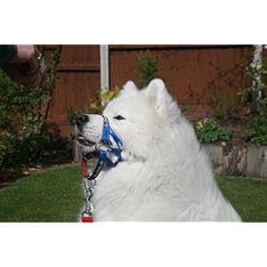 Gencon All-In-1 Clip To Collar – Dog Headcollar/Halter In One – Blue/White