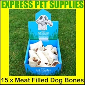 15 x MEAT FILLED DOG BONE Treat Chew Reward Gnaw