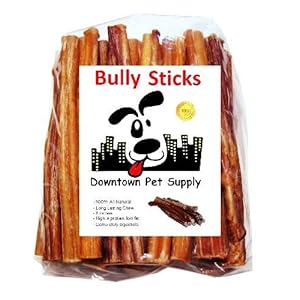 BULLY PIZZLE STICKS – 100% Natural Beefy Standard Thick 6″ (18 Pack), by Downtown Pet Supply