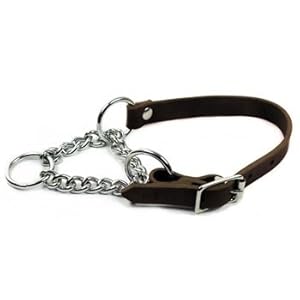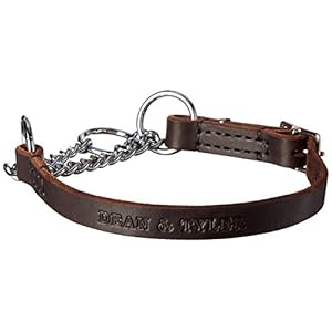 Dean and Tyler “LEATHER MARTINGALE”, Dog Choke Collar with Chrome Plated Steel Chain – Brown – Size 30-Inch by 3/4-Inch – Fits Neck 28-Inch to 30-Inch