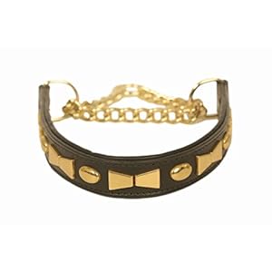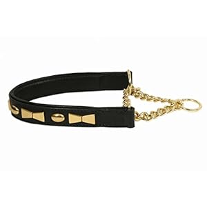 PADDED Half check Leather Dog Collar: fits up to 22″( 55 cm) including chain (width 1″)