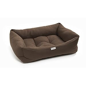 Cosy durable washable sofa style dog bed in Chocolate Brown Canvas