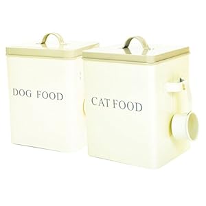 east2eden Cream Retro Vintage Double Sided Enamel Dog Cat Pet Food Dry Storage Box Container Tin