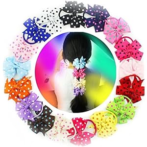 18 Pcs 3.5 Inches Girls Gift Hair Accessories Pinwheel Polka Dot Hair Bows Rubber Elastic Band Tie Ponytail Holders