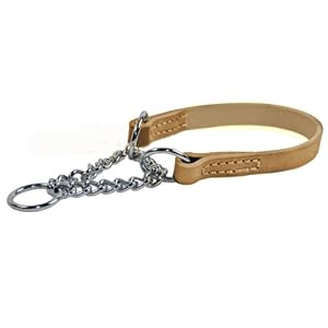 Dean and Tyler “LEATHER MARTINGALE”, Dog Choke Collar with Chrome Plated Steel Chain – Tan – 30-Inch by 3/4-Inch, Fits Neck 28-Inch to 30-Inch