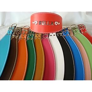 GREYHOUND Personalised Leather Dog Collar (neck size 32cm – 43cm). See our other listings for XSmall, Small, Medium, Large and XLarge.