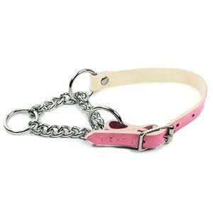 Dean & Tyler ” Leather Martingale” 18-Inch by 3/4-Inch Dog Choke Collar with Chrome Plated Steel Chain, Fits Neck 16-Inch to 18-Inch, Pink