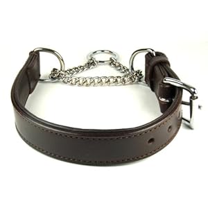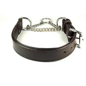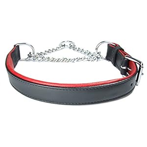 Adjustable PADDED Half check Leather Dog Collar: fits up to 20″ including chain. Width 1″ (2.5 cm)