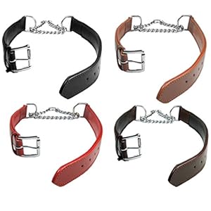 Adjustable PADDED Half check Leather Dog Collar: fits up to 22″ including chain. Width 1″ ( 2.5 cm)