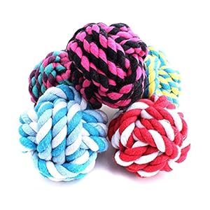 Da.Wa Pet Cat Dog Cotton Rope Braided Ball Play Fetch Toy 5.5cm Random Color