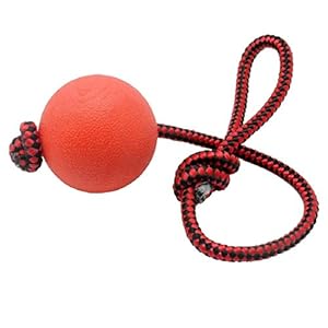 Durable Dog Ball With Rope Strong Solid Rubber Professional Training Dog Ball-L