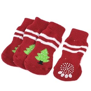4 PCS Tree Pattern Knitted Nonslip Walking Bootie Sock Red for Dog