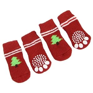 Sourcingmap Knitted Tree Paw Pattern Stretchy Pet Dog Socks, Large, Red/ Green, Pair of 2