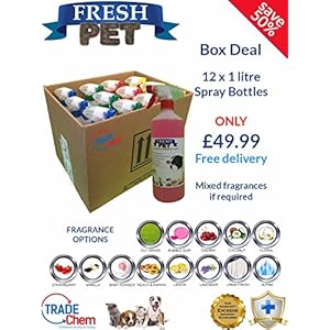 12 PACK FRESH PET 1L SPRAY BOX DEAL – Kennel/Cattery Disinfectant and Deodoriser – VARIOUS FRAGRANCE
