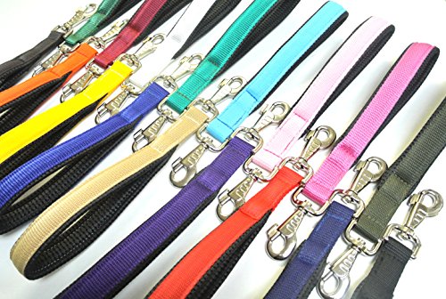 10″ Short Close Control Lead With Padded Handle. These dog leads are made in the UK by Church Products UK Using 25mm webbing which is strong and durable, Has a sewn in heavy duty nickel plated trigger clip Also has a sewn in padded handle for the comfort of the handler (for the dog that pulls) Available in Black, Royal Blue, Cerise, Purple, Red, Green, Yellow, Sky Blue, Emerald Green, Olive Green, Orange, Baby Pink, Burgundy, Brown, Navy, White And Beige. Check out our shop for other leads and collars available.