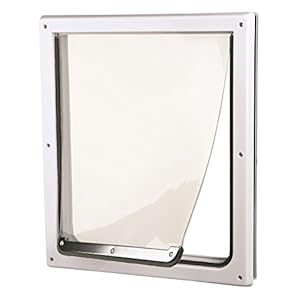 This TRIXIE 2-way dog flap will give your pet a free pass to enter or leave the house even when the door is shut! This flexible and durable dog flap is a must-have for adventurous dogs. It has a sturdy metal bar at the lower end to prevent the flap from swinging, while the removable metal rear panel can be used to lock the flap and keep out intruders, wind and bad weather. Consisting of a sleek white frame and a transparent flap, this dog flap will look great on any door. With the included tunnel element, you can also extend the door flap with a maximum depth of 3.2 cm to fit broader walls or doors.