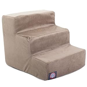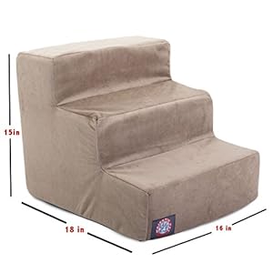 3 Step Stone Suede Pet Stairs;For dogs or cats suffering from joint problems, aging issues, hip dysplasia, arthritis or other disabilities;Majestic Pet Steps will enable your dog or cat to navigate furniture, window sills or beds with ease;Made in the USA;Dimensions 18-inch L by 15.5-inch W by 15-inch H
