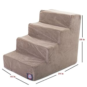 4 Step Stone Suede Pet Stairs;For dogs or cats suffering from joint problems, aging issues, hip dysplasia, arthritis or other disabilities;Majestic Pet Steps will enable your dog or cat to navigate furniture, window sills or beds with ease;Made in the USA;Dimensions 24 (wide) x 16 (long) x 20 (high)