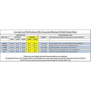 5 COLOURS and SIZES available. Loving Care Pet Products Ultra Supreme Pet Bed, Dog Bed, Cat Bed. Completely Machine Washable. Super Plush, Thermal, Water, Wind, Oil and Urine Resistant, Durable, High Reinforced Sides, Heavy Duty Non Skid Bottom. Our DOG, CAT, KITTEN and PUPPY beds are Top Quality, Non Allergenic Materials. Removable/Reversible pillow mattress. All Season, All Weather Pet Bed. Five Sizes to Fit Most Pets. …