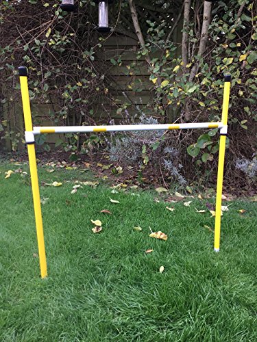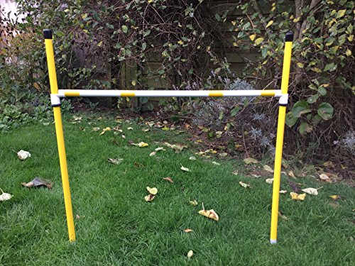 This is a new product for 2016 to compliment the rest of the Jessejump range. The height of the Jump Cups can be adjusted by sliding them up and down the poles. The Jumps have detachable galvanised steel spikes which csupport the uprights when inserted into the ground. Each jump has one jump bar. In this pack you get 1 yellow jump. Total width of the jump when erected is 800mm and full height of the jump is 775mm. Jump pole will stay up even in high winds but will fall if hit by the dog. Great for taking out to the park or beach, light weight and easy to carry and assemble. Full assembly instructions enclosed. (due to amazons new postage policy we can only post this item to mainland uk (England, Wales, and Scotland only))