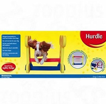 The Rosewood Small Dog Agility Hurdle is brightly coloured and perfect for smaller dogs. You and your dog will have lots of fun training at home. It is made from soft but rigid foam board, so there is little danger of injury. If the foam board elements are knocked over there are no loud noises which could frighten your dog, so it is ideal for timid dog and puppies.The height is variable so you can adjust it depending on the size of your dog and its progress. The Rosewood Small Dog Agility Hurdle is very easy to assemble. The individual elements are simply slotted together. And because the hurdle does not weigh very much it is easy to transport and very quick to assemble or dismantle so it is perfect for use in the home, garden or park. Training is a great way to stretch your dog mentally and physically. It also strengthens the bond between the two of you. You will both have lots of fun when training with this indoor hurdle.