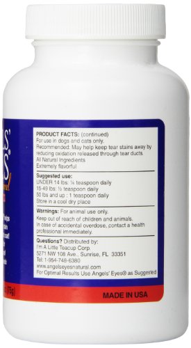 Other products are topical requiring high maintenance and yet will only remove the tear stains temporarily causing it to return worse than before. Angels’ Eyes- Natural never adds food dyes, wheat, corn, or soy which may have negative effects on your pet.