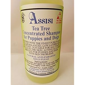 Blended with the finest pure plant oils, ph balanced, low lather and non-toxic. Suitable for all coats, gentle to the skin, acting as a non-irritant for puppies and dogs with skin problems. Safe and soothing for both dogs and puppies. Non-toxic, kills fleas without exposing pets and owners to harmful pesticides. HOW TO USE: Apply regularly during Flea season, and can be used together with the ASSISI Natural Dog Flea and Tick Grooming Lotion. Full directions on how and when to use are included with your purchase. Formulated for your pets by professional Homeopath Andrew Berwitz. CONTENTS: ASSISI Tea Tree Aromatherapy Shampoo is blended with the finest natural ingredients, in a soothing shampoo base, together with concentrated tea tree oil to help eradicate fleas. Improves hair growth and minor skin conditions. Does not contain formaldehyde, often found in cheap pet shampoo. Free from sodium lauryl sulphate.