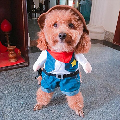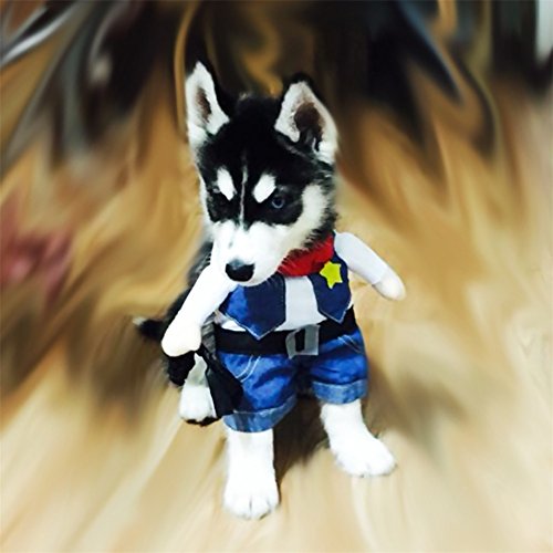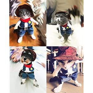 Made of polyester and non-woven fabric, soft and breathable. This fresh design pirate costume transforms your pet in the humorous Caribbean pirate. (Please note that just consume can wear two front paws)