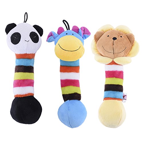 Awhao Lovely Dog Rattles and Squeeze Toy Puppy Pet Durable Plush Sound Squeaky Animals Shape Training Chew Toy, 3 Style Available