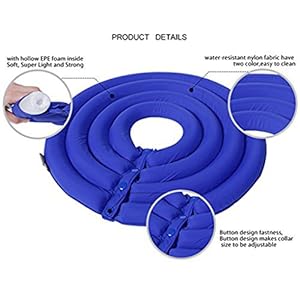 Apply to pets after surgery, wound inflammation, repair, pet scratching and licking the wound to slow speed of recovery can be avoided. Prevention of habitual licking the hair, feet. Mask-free, does not affect the view and the consumption of water, greatly reducing pet fears. Soft and comfortable material, you can adjust double strap, wear easily.Less contact area when sitting and standing,pet will not be hot. Wearing collar makes protection ring more solid, do not fall off.