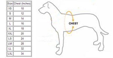 Chest: XS=10 Inches S=12 Inches M=14 Inches L=16 Inches XL=18 Inches XXL=20 Inches LS=24 Inches LM=28 Inches LL=32 Inches LXL=34 Inches