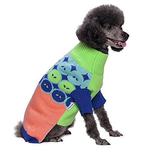 Has the color mix of this product reminded you something? It is the Teletubbies inspiration. The worldly renown BBC children TV series filled full of love, laughter, and fun to millions of people’s life, so we came up with this sweater to continue the love spirit to your pet. The design of high neck and long sleeves, combined with striking colors of lemon green, turquoise, pink, and navy, would warm your puppy both inside and outside. In addition with supreme acrylic sweater material and smart design of leash hole, it will make your dog happy and glowing!
