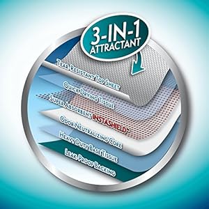 Prevents Leaking and Run-Off With Advanced Polymer Technology. Powerful Attractant Plus Odor Control. Advanced Polymer Technology Converts Liquid Into Gel and Locks In Moisture. Specifically Designed Neutralizers Eliminate Tough Urine Odors. Accelerates Training Time By Encouraging Instinctive Elimination. Absorbent Core Draws In Wetness To Prevent Messy Tracking.