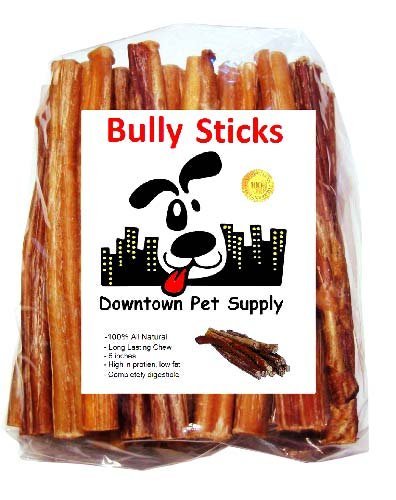 Downtown Pet Supply’s Bully Sticks are 100% All Natural beef. These Bully Sticks are low in fat, high in protein, vitamins and minerals. These Bully Sticks are guaranteed not to contain any artificial flavors, colors, chemicals or preservatives. USDA Approved and considered odor free (Not Smoked) – contain a natural meaty scent. Bully Sticks help to keep your dog’s teeth and gums clean and strong. Great treat for chewing, pieces do not splinter or break off., completely digestible. DOGS LOVE THESE!
