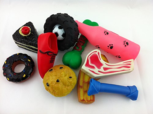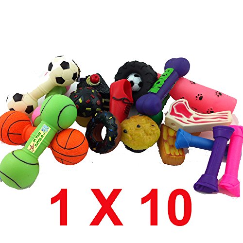 Bumper Selection of Squeaky Vinyl Dog Toys – Pack of 10 – Medium