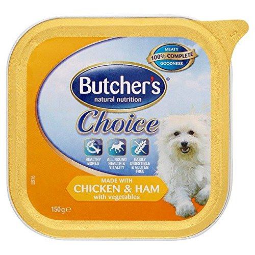 Butcher’s Choice is a nutritionally balanced complete meal for adult dogs and can be fed on its own. With Chicken and Ham with Vegetables.