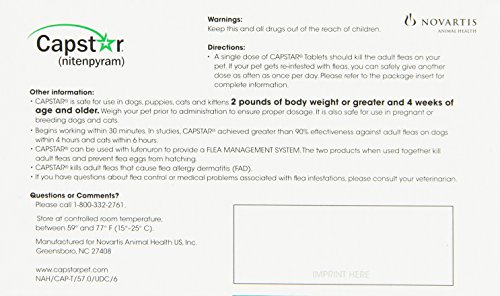 Capstar tablets rapidly kill adult fleas on the dog or cat. For safe and effective flea control, also use a houshold spray such as Indorex to kill flea eggs and larvae in the home.