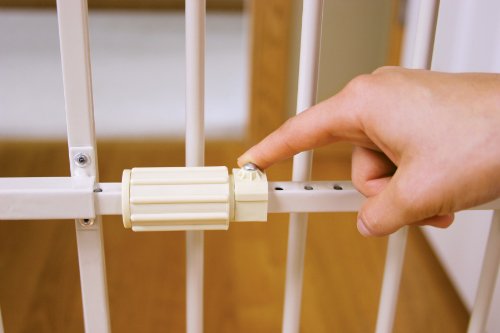 This gate is adjustable from 66cm to 106cm wide and stands 45cm tall