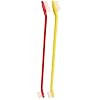 Dog tooth brush is a small bump on one side,the one side is a small soft strip,very soft,give the dog time to clean teeth never hurt them.