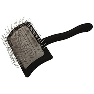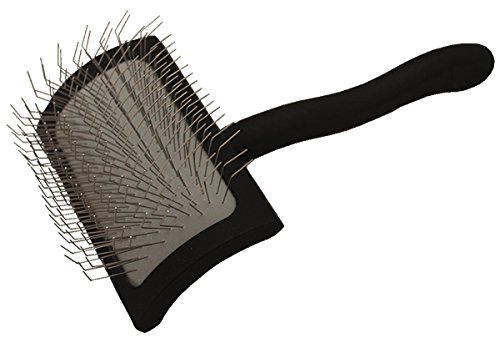 The Chris Christensen Long Pin Slickers allow you to do the job in half the time! These thoughtfully designed slicker brushes feature long pins to penetrate deep into longer coats. This is the Big K Medium with sparse pins. Special pin bend creates lift & movement to pick up more coat. Flexible cushion is gentle and forgiving. Extreme curved back allows for more control, movement and direction. Extra long ergonomic handle reduces arm & hand fatigue.