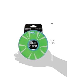 Extend fetch time to early mornings and late nights with LIGHTPLAY fetch toys. Charge under bright light 5 to 10 minutes for 20 to 30 minutes of high-visibility lighted play. MAX GLOW products are made with a safe high quality photo luminescent material that is both chemically and biologically inert. Recharge in seconds with a bright flashlight. Fast charging MAX GLOW rubber EVA foam and 2100 denier polyester construction. Glow in the dark 3D print on fabric and glow in the dark rubber ring on the bottom helps you and your dog find the flyer no matter what side it lands on. Designed for fast flight; floats