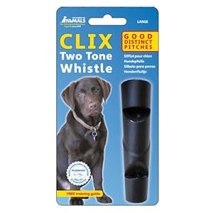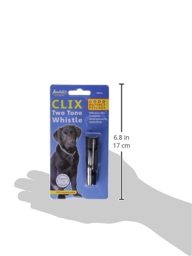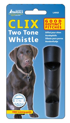 The Clix Two Tone Whistle provides two distinct pitches, produced by blowing either end of the whistle. This makes it a versatile dog training tool for use in different scenarios. Durable and multi-functional, the Clix Two Tone Whistle is a great addition to any dog-trainers collection.