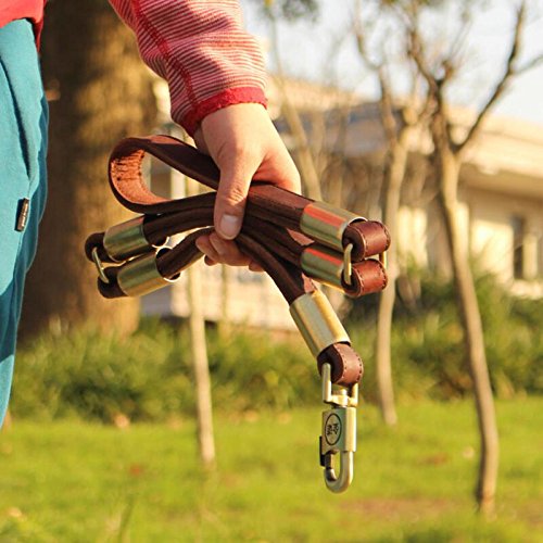 Multi-use leather leash: Walk your dog hands-free with the self-adjusting floating ring.