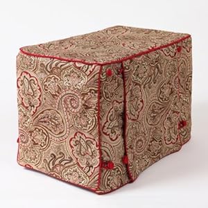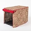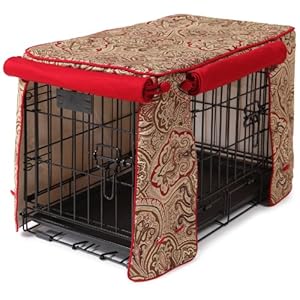 Crimson Espresso with Simply Red Cording in Double Door Stagecoach- (U.S. Patent Pending) Rich and regal, our Crimson Espresso cover sets an elegant mood with striking swirls of chocolate, coffee, ecru and cranberry. Accented with fire-engine red twill cording buttons and loops. * Fully lined with no visible seams * Meticulously stitched and detailed like fine upholstery * Finished with contrasting fabric on cording, buttons and loops * Covered buttons are sewn by hand * Crate Covers & More products are proudly made in U.S.A. * Coordinate beautifully with Crate Covers & More?s dog beds * 100% Satisfaction Guarantee Made to fit MidWest Lifestages Double Door Series and select iCrates Double Doors LS-1648DD 48 Depth 30 Width 33 Height